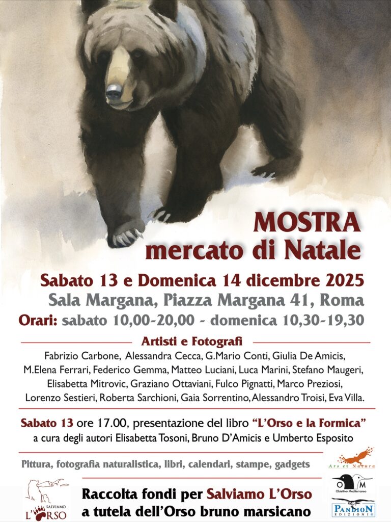 Durante il weekend del 13 e 14 dicembre, la nostra associazione ha partecipato con entusiasmo alla Mostra Mercato di Natale organizzata, in collaborazione con Progetto Mediterraneo, alla Sala Margana di Roma, un evento annuale di beneficenza che, quest’anno, è stata dedicato alla protezione dell’orso bruno marsicano e alla sensibilizzazione sulla sua conservazione.