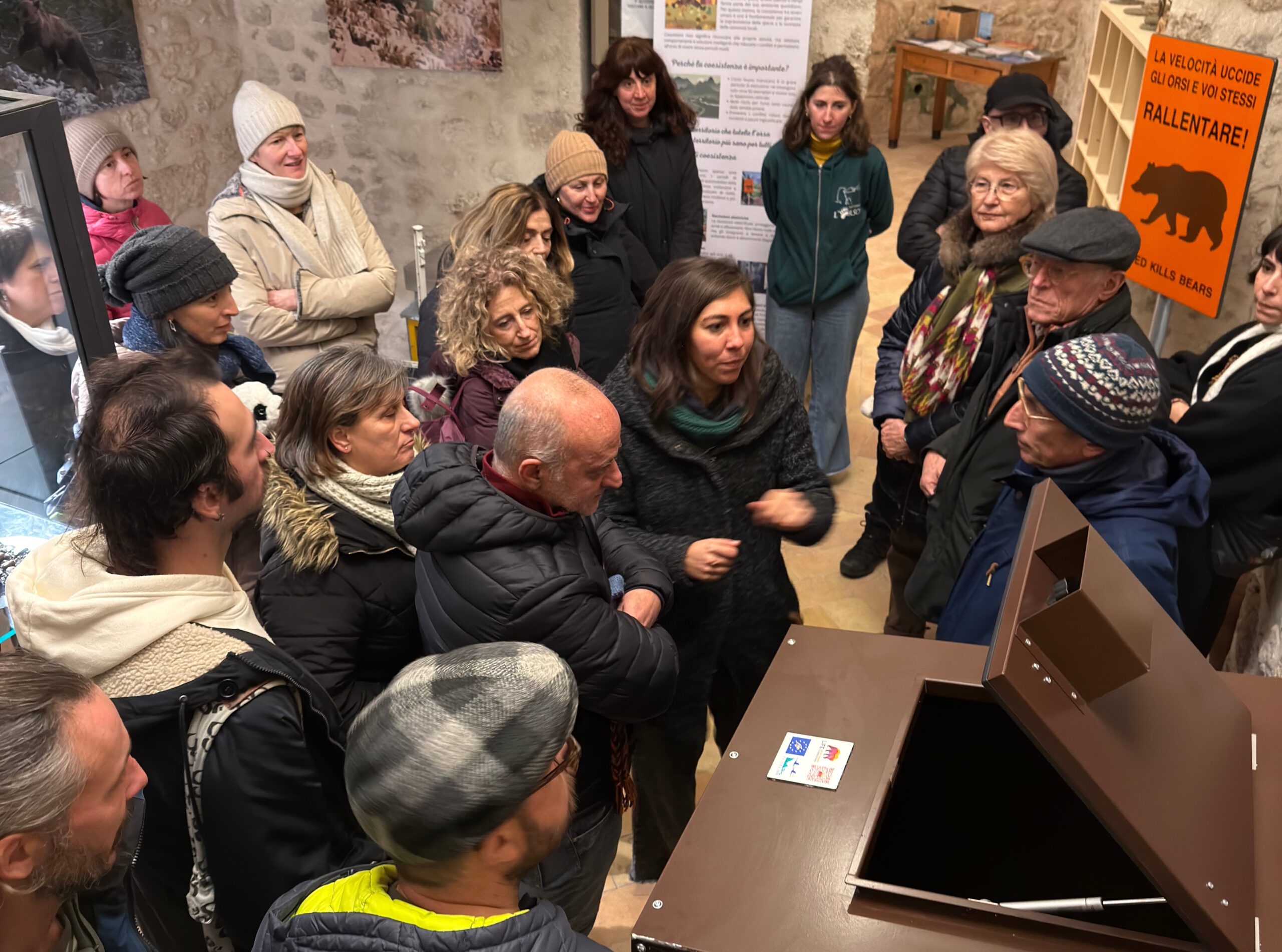 Durante l’inaugurazione, dopo i saluti istituzionali del sindaco Antonio Carrara, hanno preso la parola i rappresentanti delle realtà coinvolte: Antonio Monaco per la Riserva, Mario Finocchi per la Cooperativa Valleluna, Mario Cipollone per Rewilding Apennines, Serena Frau e Valeria Barbi per Salviamo L’Orso. Voci diverse, unite da un messaggio comune: la conservazione dell’orso bruno marsicano passa dalla conoscenza, dalla prevenzione dei conflitti e da un dialogo costante con le comunità locali.